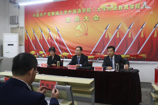 10 月 29 日下午,聊城大学外语学院党员大会在外语学院A区112教室召开。外语学院党总支书记齐登红,副书记、院长陈万会,副书记高岩、王希莲,副院长王洪月、李维滨、刘风山出席会议,学院全体党员和部分学生入党积极分子参加了此次会议。