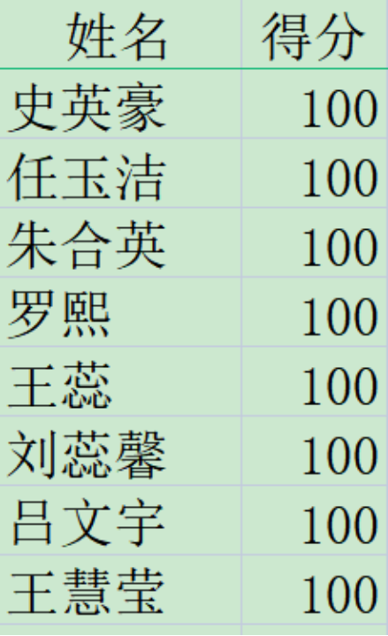 以下为本次考试得满分的同学名单: