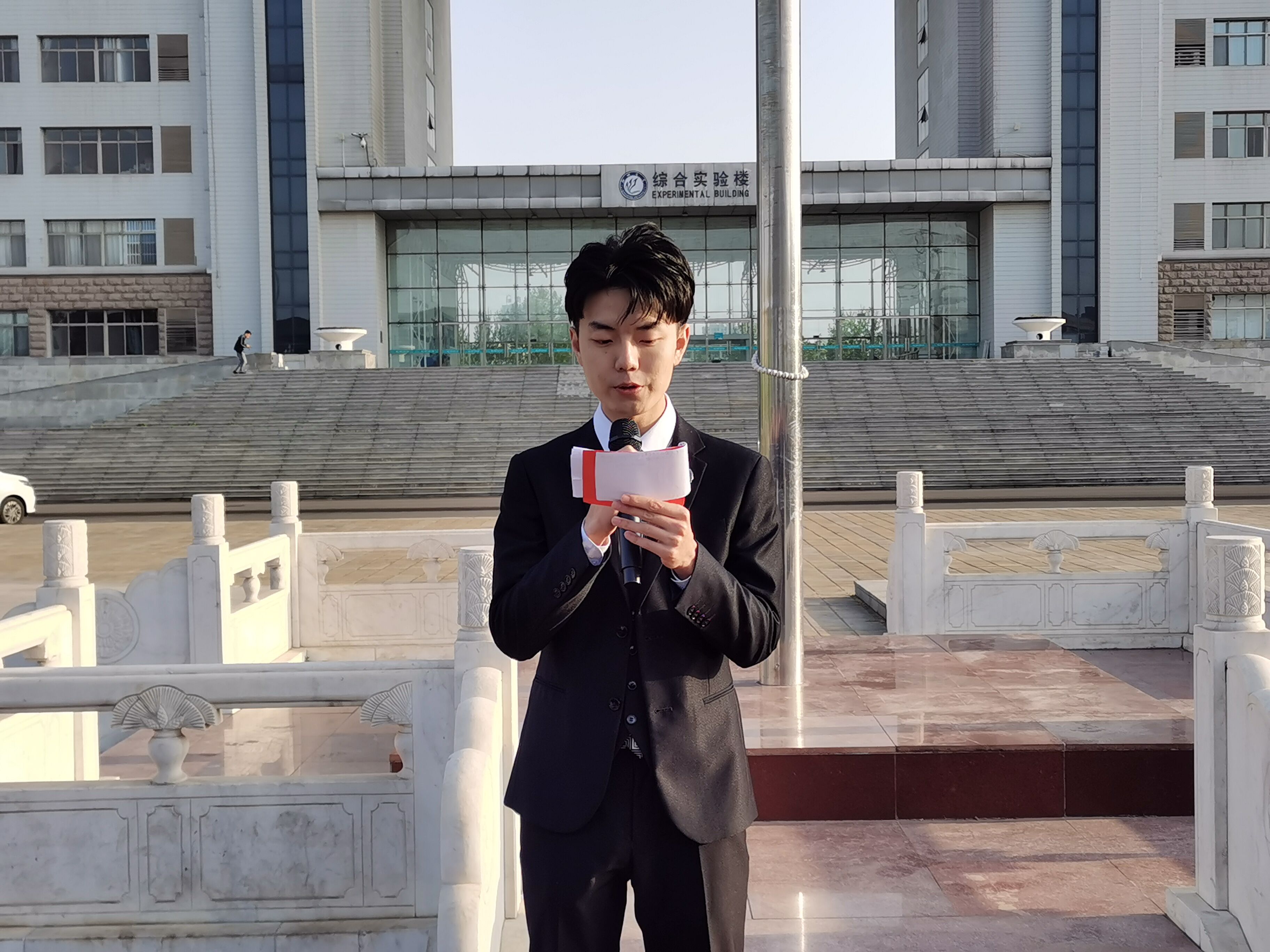 为庆祝建党一百周年,有力激发青年学子爱国情怀和奋斗精神,2021年4月19日,聊城大学米兰体育网页版于西校区十一广场承办以“峥嵘百年史,砥砺中国行 ”为主题的升旗仪式。聊城大学党委常委、副校长赵明吉,米兰体育网页版领导班子及全体教师党员出席仪式。