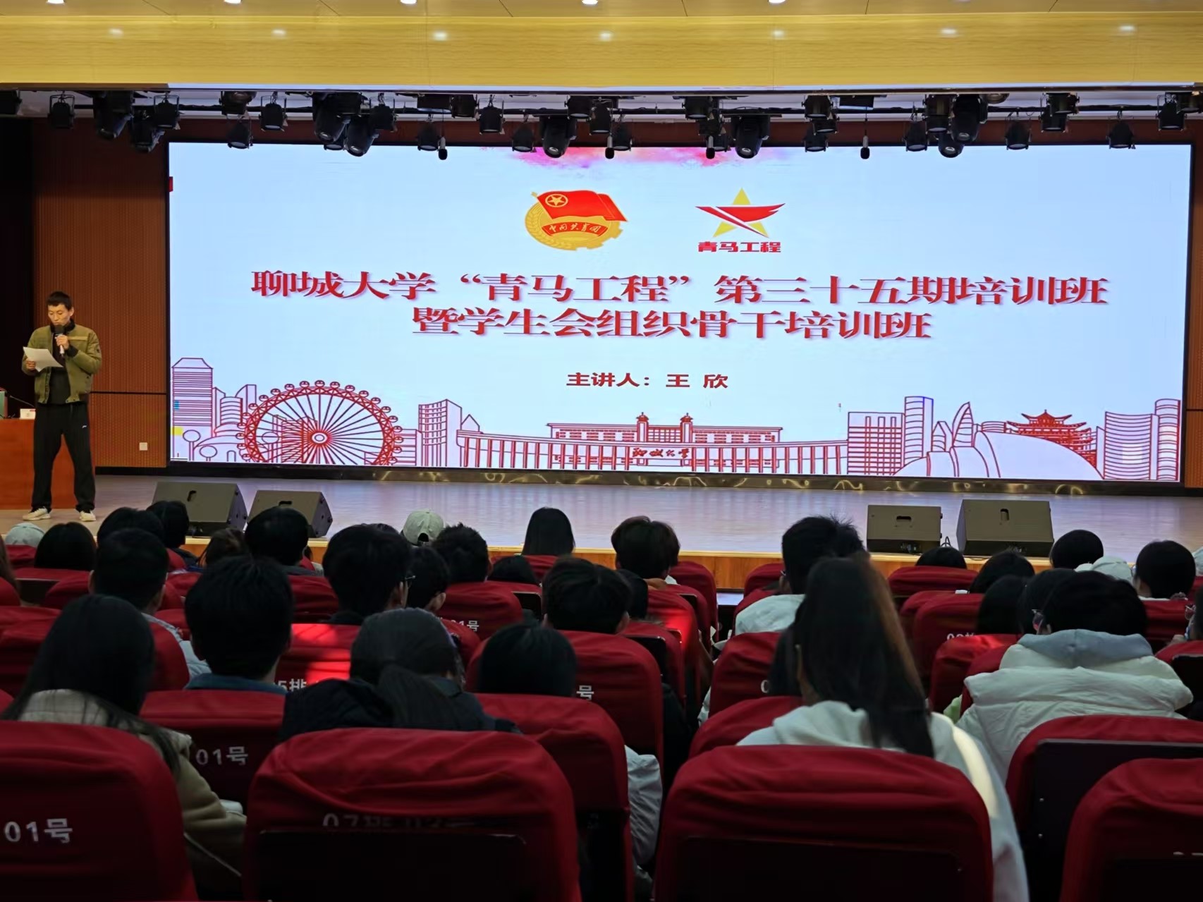 本次培训特邀党委办公室、校长办公室王欣主任担任主讲人,聊城大学青马学员及校级学生会组织成员积极参与。