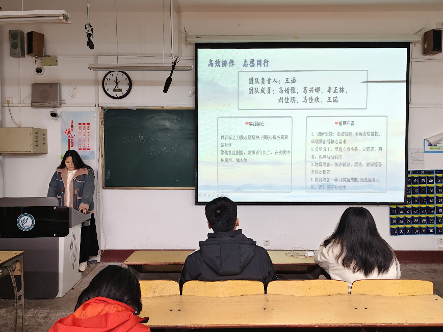 答辩现场,学生围绕实践内容、成果总结、心得感悟等方面逐一汇报。学生结合寒假期间参与的返家乡实习、社区志愿等实践经历,生动讲述在志愿服务中的成果收获,充分展现了外院学子脚踏实地、学以致用的青春风貌。汇报内容主题鲜明、案例鲜活,体现了学生将外语专业优势与社会实践相结合的良好成效。