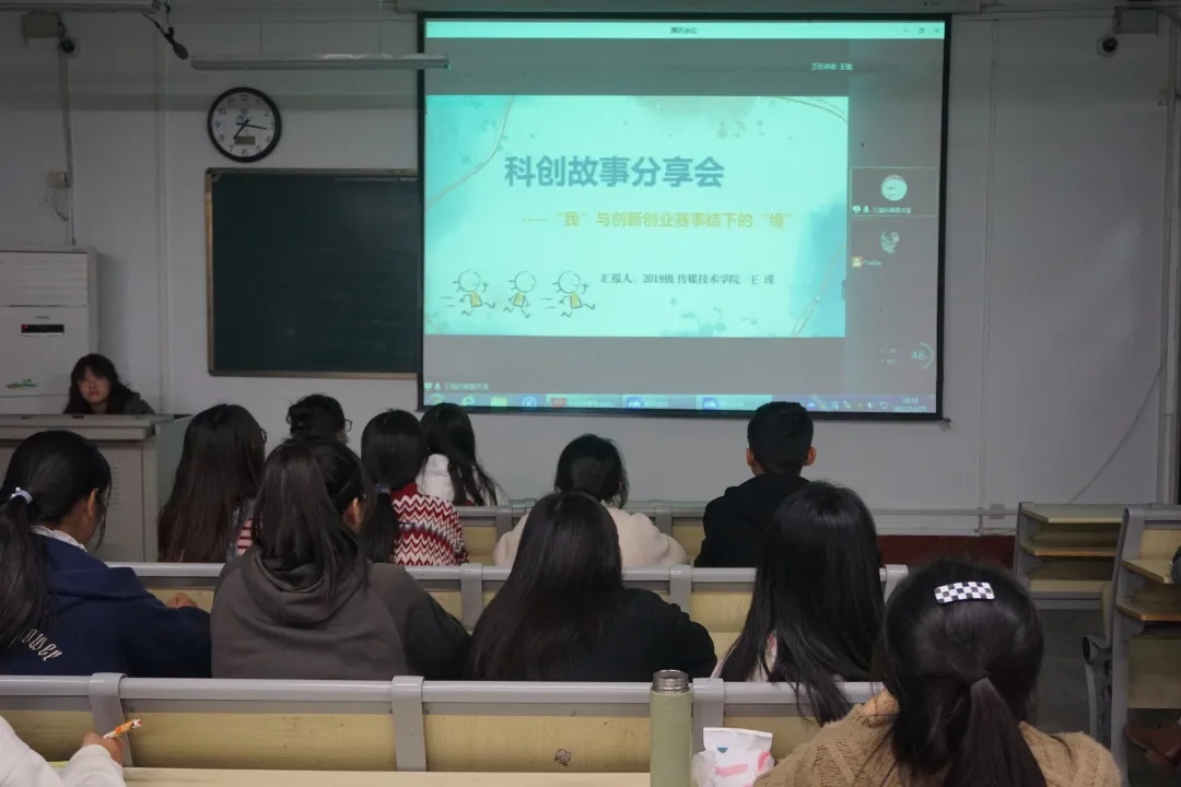 来自传媒技术学院2019级的王瑾则通过亲身的科创故事,重点分享了什么是“挑战杯”和“互联网+”大赛。让同学们对“挑战杯”大学生学术科技作品竞赛和“挑战杯”大学生创业计划竞赛加以区分,向参加比赛的学生提出针对性建议,并呼吁更多的同学积极参加创新创业比赛。